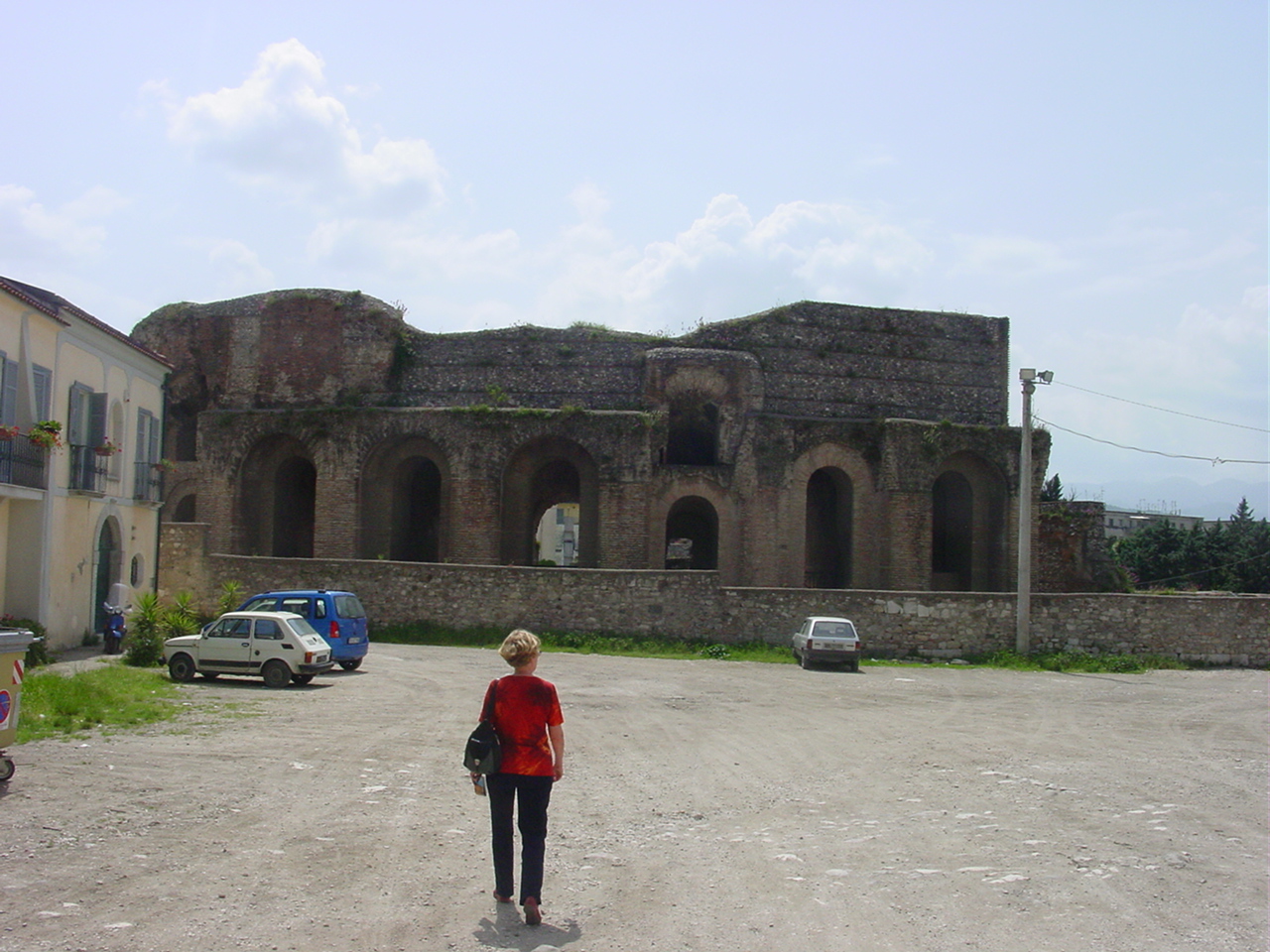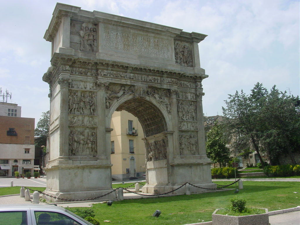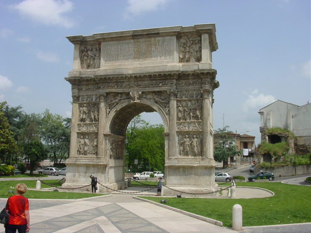 Benevento und andere ZOOM ⛶ Von Neapel ging es mal ins Hinterland, nach Benevento und anderen Orte, deren Namen ich vergessen habe. Offenbar sind wir auch etwas gewandert aber wo ist das nur? Dieser Triumphbogen kann doch fast nur in Rom stehen, aber da waren wir nicht.